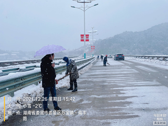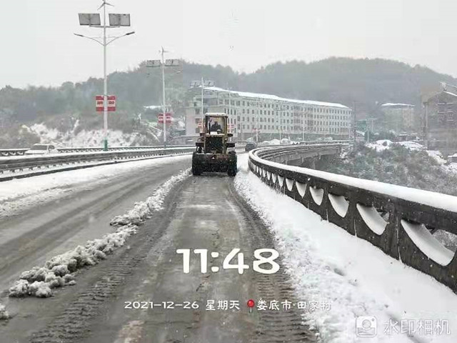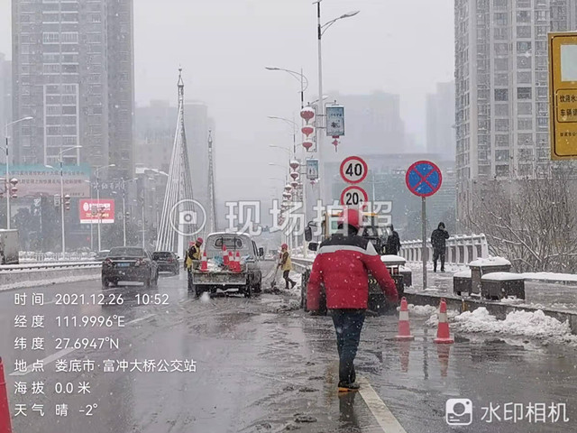 婁雙公路通行正常,未出交通事故,市政維護處正在鏟雪,準備撒鹽,確保橋面不結冰