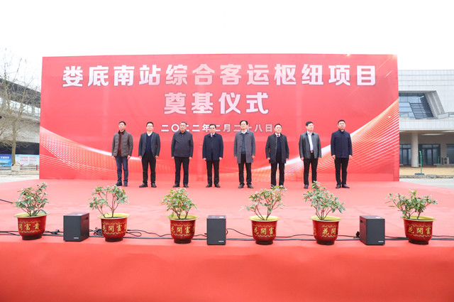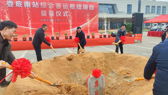 2月28日上午,婁底南站綜合客運樞紐項目奠基儀式在高鐵南站東側(cè)項目現(xiàn)場舉行。市政協(xié)一級巡視員易南斌宣布項目奠基,市人民政府副秘書長鄒定源主持奠基儀式,市交通運輸局黨組成員、副局長扶林,市創(chuàng)發(fā)集團黨委書記、董事長劉建,黨委委員、副總經(jīng)理肖小波,萬寶投資集團董事長梁養(yǎng)賢、總經(jīng)理徐業(yè)波,市道路運輸服務(wù)中心主任毛建輝,以及創(chuàng)發(fā)集團、萬寶投資集團、有關(guān)建設(shè)單位、監(jiān)理單位代表參加奠基儀式。