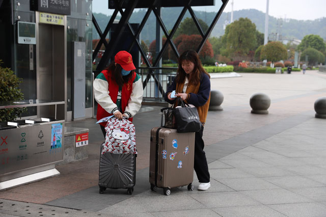 志愿者身穿紅馬甲,通過規(guī)范的手勢、禮貌的語言,主動為旅客搬運行李,宣傳疫情防控知識,幫助旅客購票退票,引導(dǎo)旅客文明出行,用實際行動詮釋志愿服務(wù)精神,成為高鐵南站一道靚麗的風(fēng)景線。