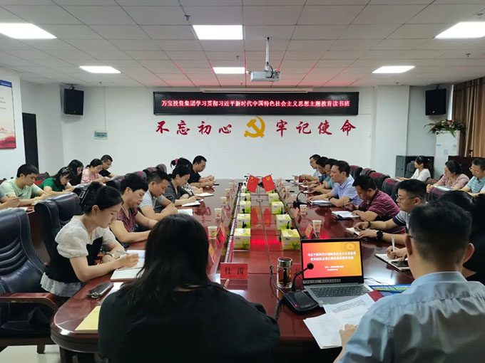 9月19日上午,萬(wàn)寶投資集團(tuán)舉辦學(xué)習(xí)貫徹習(xí)近平新時(shí)代中國(guó)特色社會(huì)主義思想主題教育讀書班,旨在進(jìn)一步深入學(xué)習(xí)貫徹習(xí)近平總書記關(guān)于開(kāi)展主題教育的重要講話精神,學(xué)深悟透習(xí)近平新時(shí)代中國(guó)特色社會(huì)主義思想,以讀書班帶動(dòng)公司上下迅速興起學(xué)習(xí)的熱潮,推動(dòng)公司主題教育見(jiàn)行于學(xué)、見(jiàn)效于干。黨委委員、紀(jì)委書記葛旭華主持并講話,黨委委員易志高以《習(xí)近平新時(shí)代中國(guó)特色社會(huì)主義思想是黨和國(guó)家必須長(zhǎng)期堅(jiān)持的指導(dǎo)思想》為題給大家上了一堂生動(dòng)的黨課。公司主題教育領(lǐng)導(dǎo)小組全體成員,五位黨支部書記,全體部門、子公司負(fù)責(zé)人等參加。